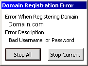 I. Introduction II. Usage III. Help I. Introduction: eNom Domain Grabber was developed by Domain Software, LLC., to work with eNom.com’s reseller API interface. The software will submit the specified domains in the Domain List box to eNom’s reseller server. The server will collect the data sent, attempt to register the domains you specified, and return the results back to the program. The results from the server will be logged to eNomlog.txt in the format: Date Time - Domain - # of Tries. An example of the log is as follows: 10/15/2002 06:35:05 - Test.com - #25. The following tells you that on October 15, 2002 at 6:35:05 AM the domain Test.com was submitted for the 25th time. The results are logged when eNom responds with data to confirm the domain was sent. II. Usage: ![]() To begin using eNom Domain Grabber, the fields for Username and Password must be filled in with a valid eNom reseller account. ![]() The Interval Time dictates how many seconds between each submission of a domain. The Interval Time can have a max value of three values. In which case the maximum value is 999, which equates to 16.65 minutes. If the interval is set at its default value of one, then all domains in the list will be submitted at a rate of two/second. This is the fastest rate that can be acquired to comply with eNom’s regulations. However, if you wish to extend the delay you can. For example, an interval of 30 would mean every 30 seconds two domains in the list will be submitted. As a result, if six domains are in the list it will take 1 ½ minutes to complete all six domains. ![]() eNom Domain Grabber has two methods of starting. First, you can click Start Immediately and bypass entering the Start Time and End Time. Or you can check Start Immediately, after which you need only click the Start button for the domains to be processed. Above you will also note that Logging has been checked. By having Logging checked, all submission of domains will be logged to eNomlog.txt. ![]() Next you enter the Domains you wish to register or grab during a drop. The software interfaces with eNom's API so it supports all domain extensions that eNom supports. ![]() Lastly, before the domains are submitted for registration, you must fill out the Settings information which is required by eNom in order to register domains with the following extensions: .biz, .info and .name. If you do not wish to enter your own name servers then you can leave the fields blank and eNom's default name servers will be used instead. Your serial number is the number we send you after you purchase a license. ![]() Above are the results for the submission of domains listed when Start Immediately is checked. Once you click Start it will become the Stop button. If Start Immediately is checked it will not stop on its own, you must stop it. The Average Number of Submissions lets you know approximately how many times each domain has been submitted to eNom. In this case each of the six domains above were submitted at an average of 56 times each. The results were logged. III. Help: ![]() Above is an internal program error that eNom Domain Grabber may cause while being used. If this error occurs you will be prompted with two options: to click Yes and send the error data that was logged to Domain Software, LLC. technicians to help resolve the problem, or to click No and have no data sent. ![]() Above is an error eNom may return. If such an error is returned, it is merely a problem eNom produced while processing the data. If you should receive an error message from eNom’s servers the following will be produced: the Domain Registration Error Form will tell what domain created the error, the Error Code received from eNom, and the Error Description. You will have the option to either Stop All domains from being submitted to eNom or stop the domain that initiated the error by clicking Stop Current. |